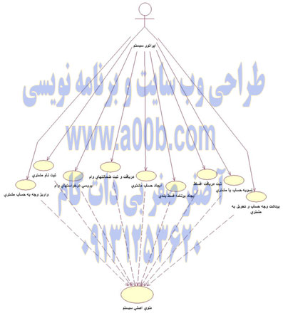 Assumption: منظور از Actor در این Use Case اپراتو سیستم (کارمندان) و مشتریان می باشند که البته مشتری به صورت مستقیم از نرم افزار قرض الحسنه استفاده نمی نماید. بلکه تمامی عملیات مربوط به مشتریان قرض الحسنه توسط اپراتور سیستم انجام می شود ولی برای نمایش ارتباط انتزاعی با سیستم نرم افزاری قرض الحسنه کاربر مشتری نیز مرتبط به سیستم نمایش داده می شود.